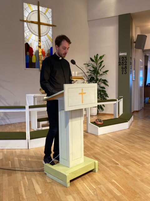 Anna-Lena Lundh ledde dagens gudstjänst och Lars-Martin Lundh predikade över texten om kvinnan vid Sykars brunn. Vad kan vi lära oss om kvinnans möte med Jesus? Vi kan liksom kvinnan bli ett vittne för andra så de bli nyfikna på tron. Jesus vill använda oss alla.