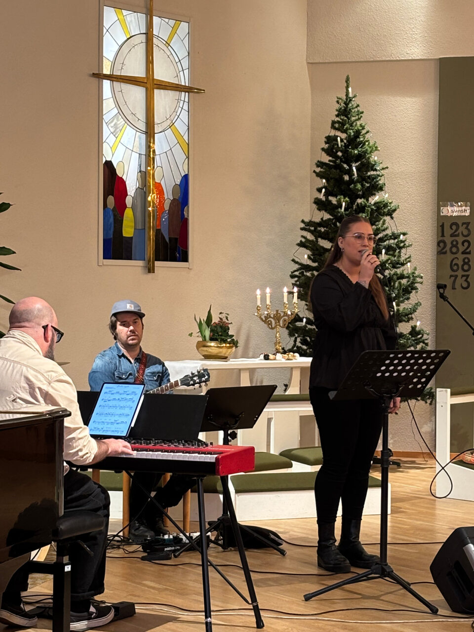 Gudstjänsten leddes av Elisabet Andersson och för sång och musik stod Erika Kågström och Mästerskapet, idag kompletterat med Magdalena Lundberg.
