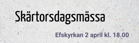 Torsdag den 2/4 kl 18 är det Skärtorsdagsmässa på Efskyrkan. Medverkar gör Kristina Normark, Jonathan Söderström Häggbom och Anna-Lena Lund. Välkommen!